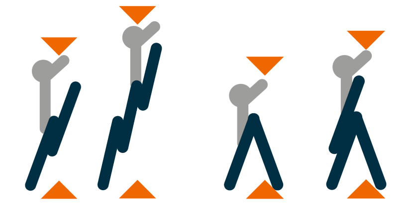 Wil je de ladder in de A-stand zetten dan plaats je de ladder in verticale positie en til je de voorste delen iets op zodat deze met de opsteekhaak vrij komt. Vervolgens laat je de voorste delen naar beneden hangen. Ga aan de zijkant van de ladder staan en trek de voorste delen in een vloeiende beweging naar voren terwijl je de ladder rustig laat kantelen zodat deze met alle 4 de voeten op de grond staat. Controleer altijd nog even of de pennen goed in de haak aan de bovenzijde zijn geschoven voordat je de ladder beklimt.