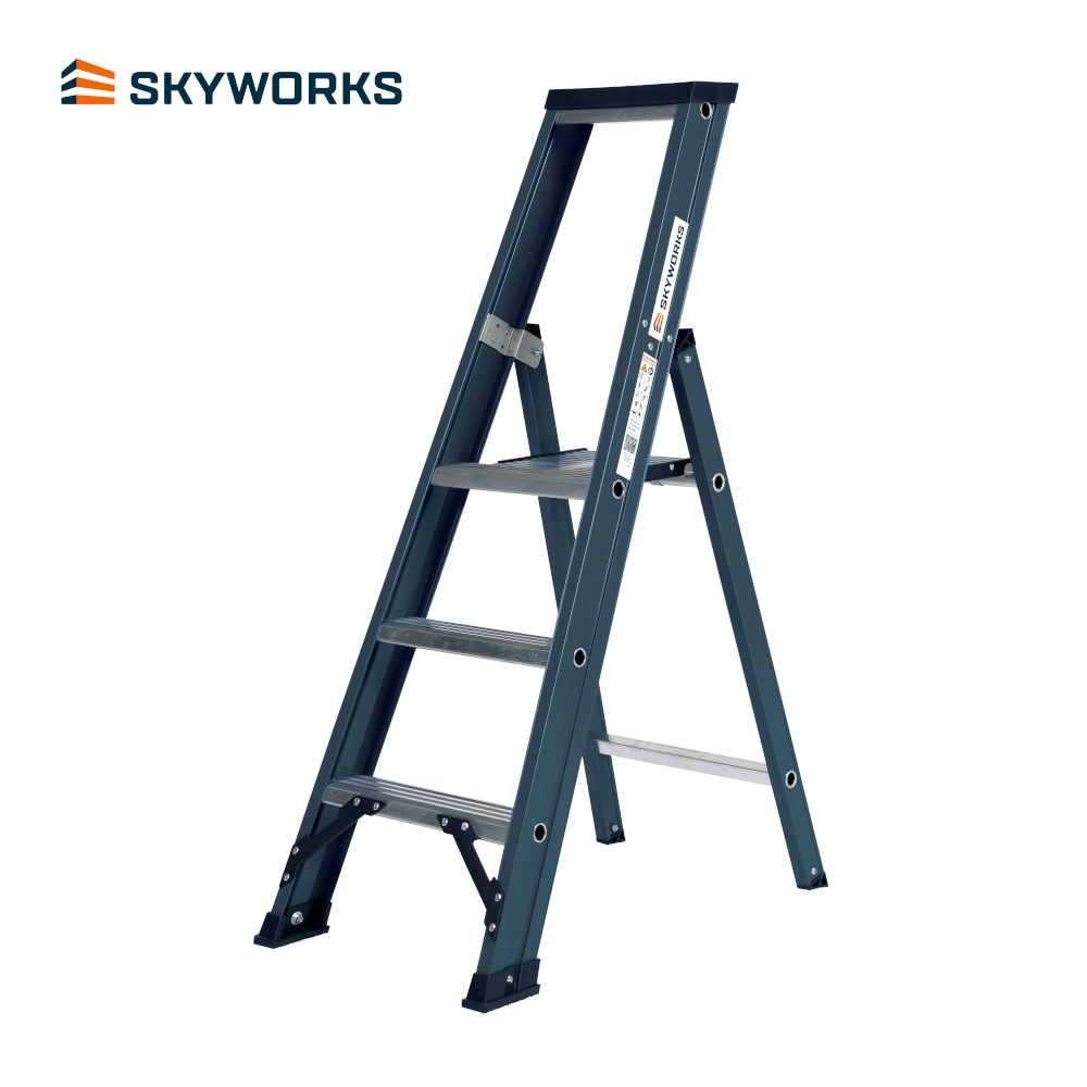 De Sky-Line bordestrap 3 treden is ideaal voor diverse onderhoudswerkzaamheden in en om een pand tot een werkhoogte van 2,8m. De trap is enkel oploopbaar en heeft 10cm diepe treden waardoor je comfortabel naar het stabordes klimt. De vaste kniebeugel, die standaard voorzien is van een materiaalbakje, geeft een goede steun wanneer je op het platform staat en biedt bij het klimmen extra houvast. Hierdoor kan je altijd veilig bij je werk komen.