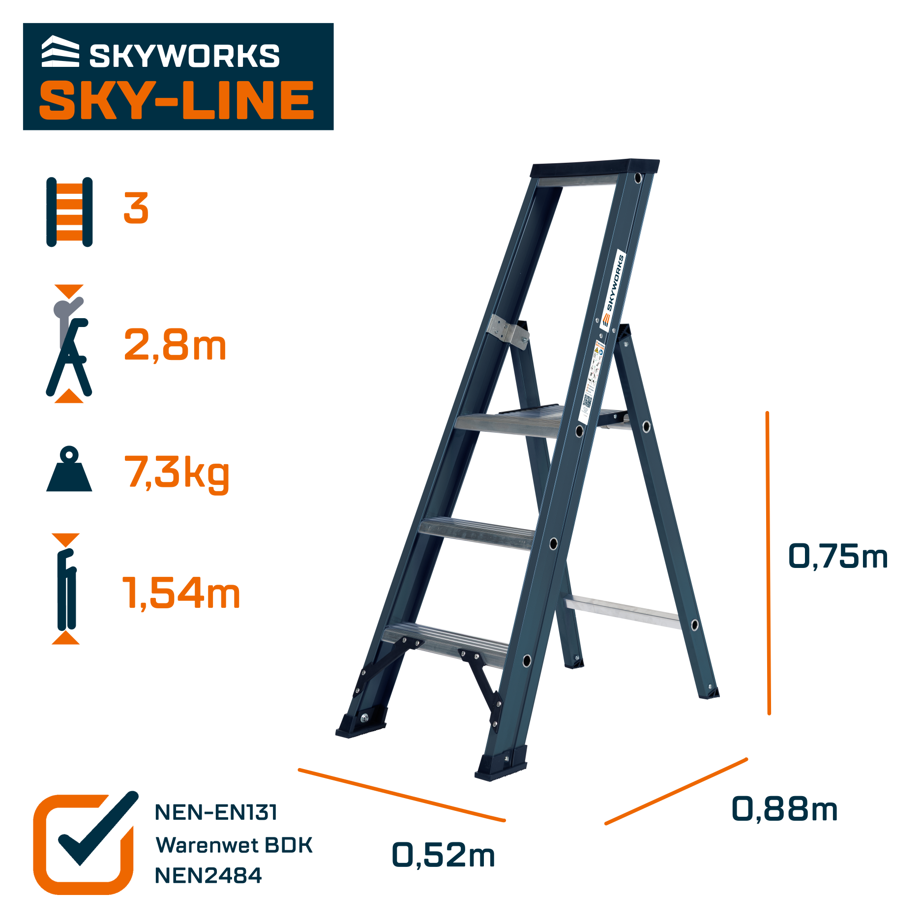 Voldoet aan Warenwet besluit Draagbaar Klimmaterieel, NEN2484 en NEN-EN 131.