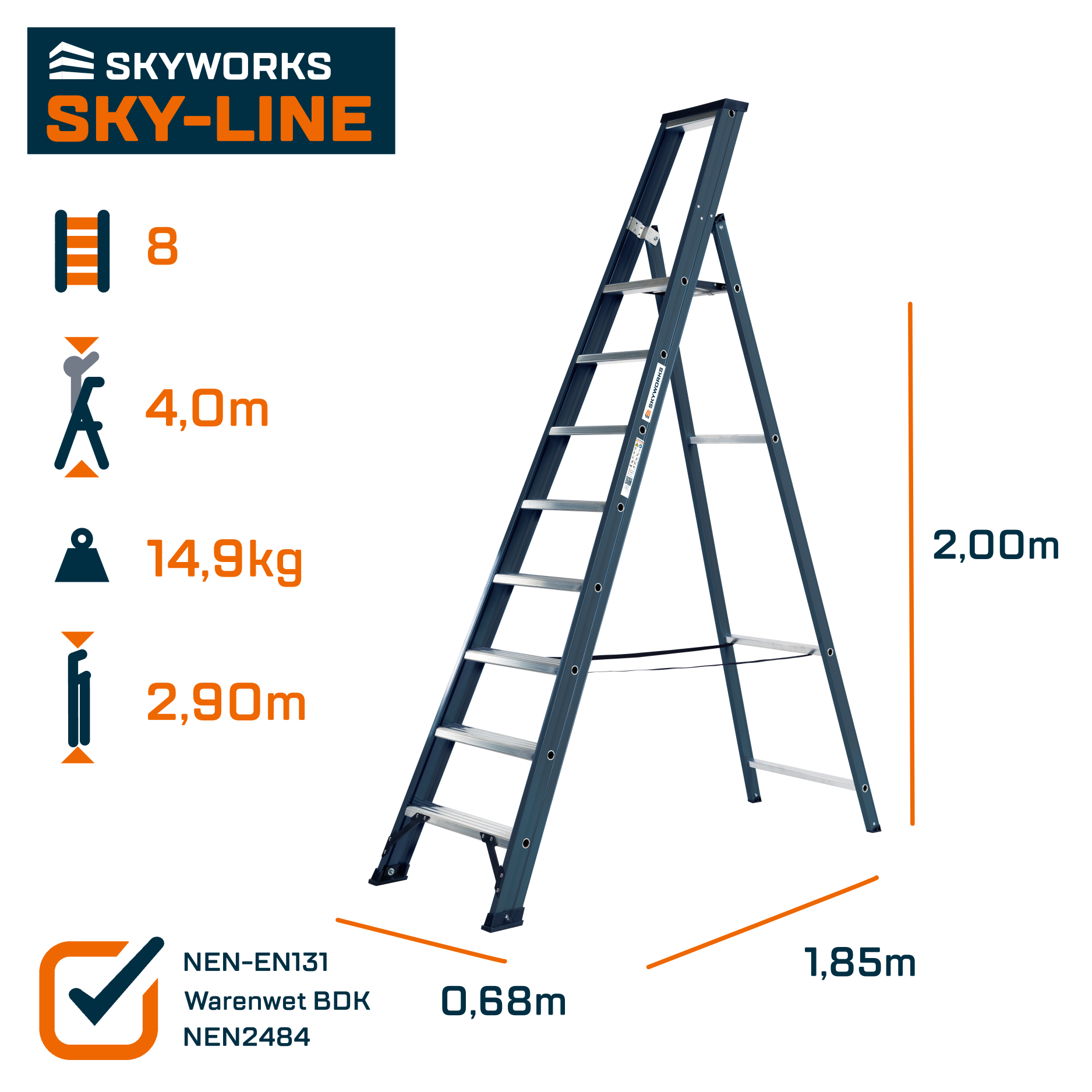 Voldoet aan Warenwet besluit Draagbaar Klimmaterieel, NEN2484 en NEN-EN 131.