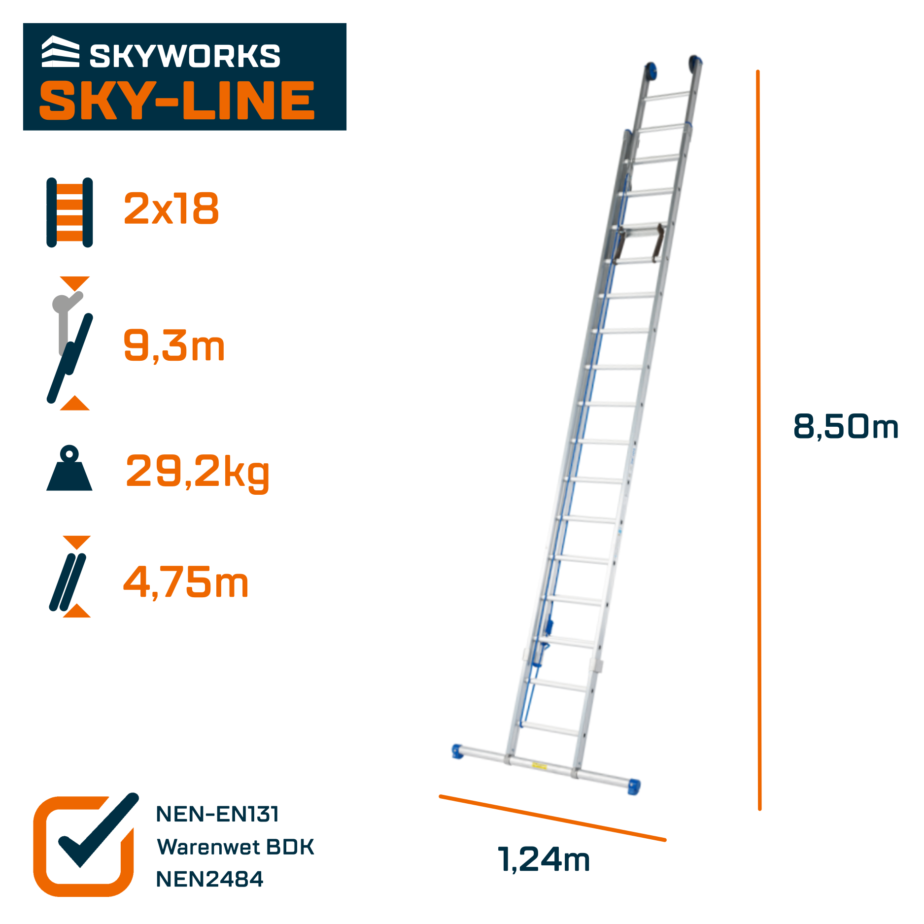 Voldoet aan Warenwet besluit Draagbaar klimmaterieel (BDK), NEN2484 en NEN-EN 131